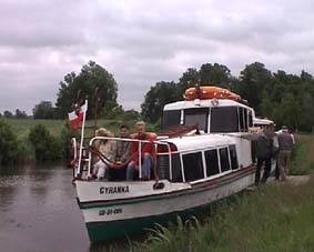 Der letzte Tag im alten Ostpreußen, er  eigentlich ein interessanter und informativer werden. Nun letzteres war es, der Rest fiel ins Wasser. Wir fahren also zunächst über Liebemühl nach Buchwalde, wo es eine Zusteigemöglichkeit für eine Bootsfahrt auf dem Oberländer Kanal gibt. Der Kanal, nur noch Touristenattraktion, ist ein Unikat in Europa. Die Steigung im Gelände wird nicht mit Schleusen, sondern mit den sog. Rollbergen überwunden. Aber auch hier macht sich der Mangel an Heimwehtouristen, und natürlich die Wetterlage, bemerkbar. Wir hatten das Schiff für uns.  Auf den entgegenkommenden Schiffen war auch wenig Betrieb. Der Kanal überwindet eine Steigung von rd. 100 m und führt von Osterode nach Elbing. Unterwegs eine kräftige Mahlzeit mit Krakauer Wurst. In Hirschfeld stiegen wir aus, der Bus erwartete uns zur Weiterfahrt nach Frauenburg.