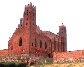 Von Gollup aus fuhren wir noch nach Rheden, zur stattlichen Ruine eines weiteren Ordensschlosses, des ehemals größten und schönsten, das der Orden je erbaut hat;  immerhin waren es rd. 60 Burgen, 90 Städte und 1400 Dörfer, die der Orden innerhalb 150 bis 200 Jahren gründete. Ein Freund von mir, Albrecht Duwe, hat die Burg Rheden als Modell nachgebaut und das rd 20 qm große Werk dem Ordensmuseum in Bad Mergentheim vermacht.